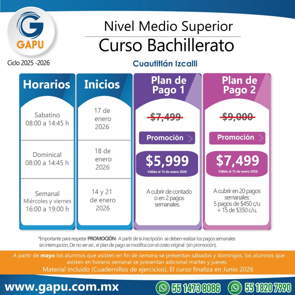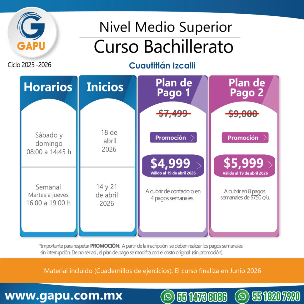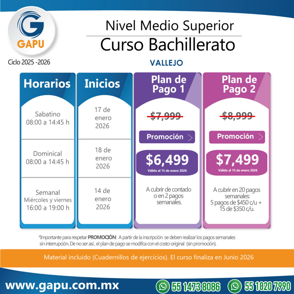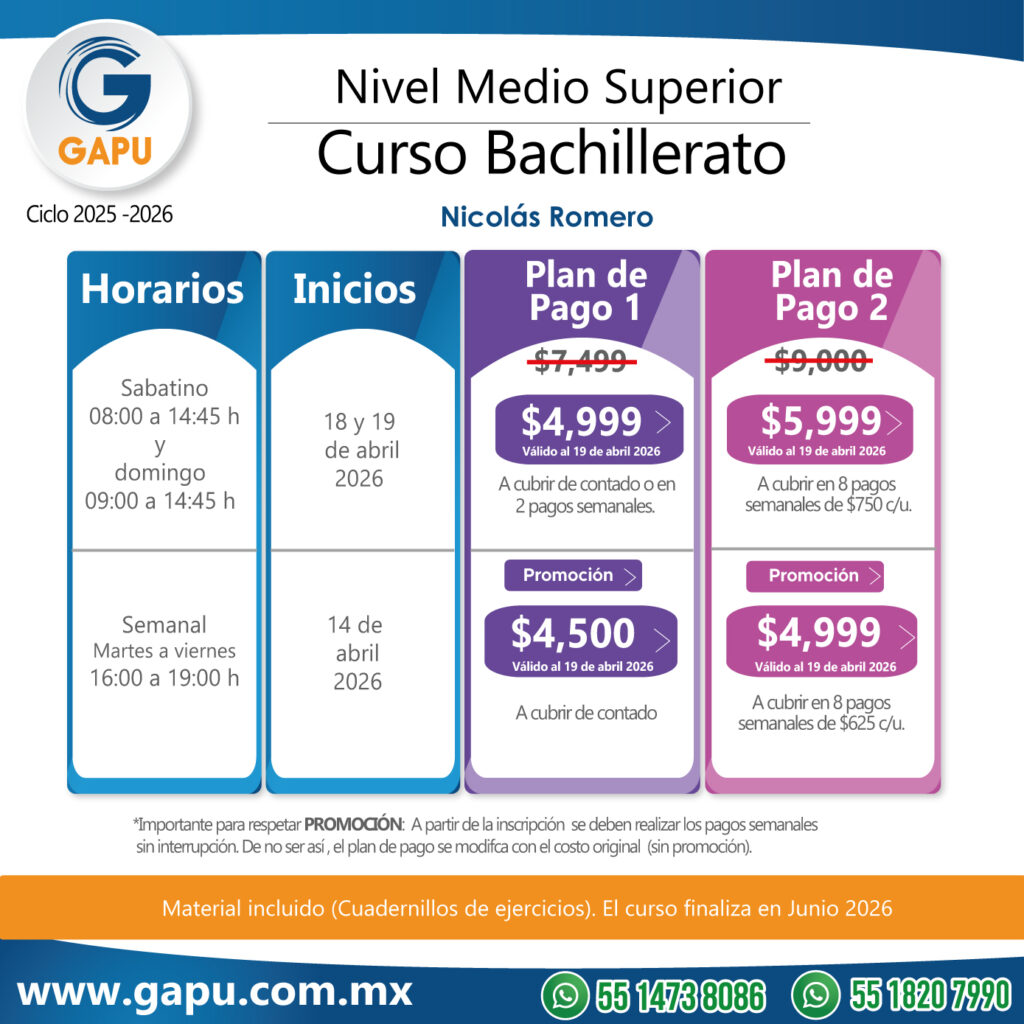Ingresa a tu primera opción de preparatoria con el curso que tenemos para ti. Nuestras clases están diseñadas para que logres obtener más de 100 aciertos. De esta forma lograrás ingresar a escuelas de alta demanda: CCH, ENP (UNAM), Voca (Poli), Normales, Preparatorias Oficiales, etc.