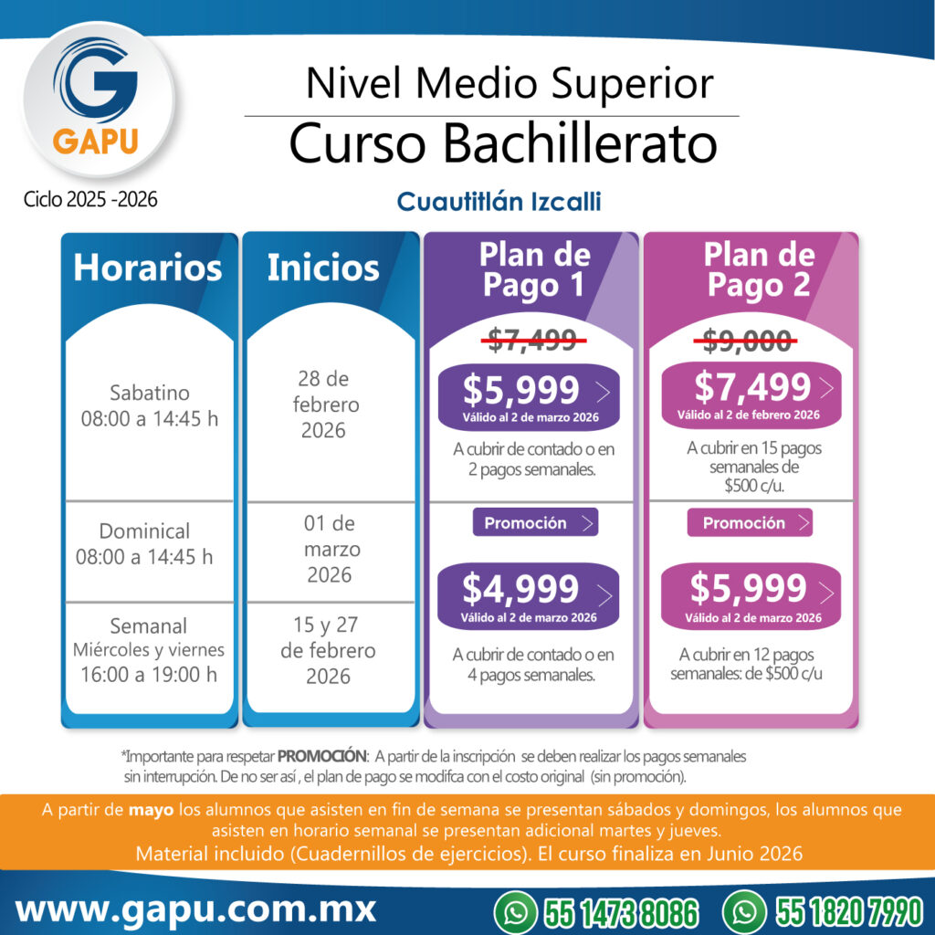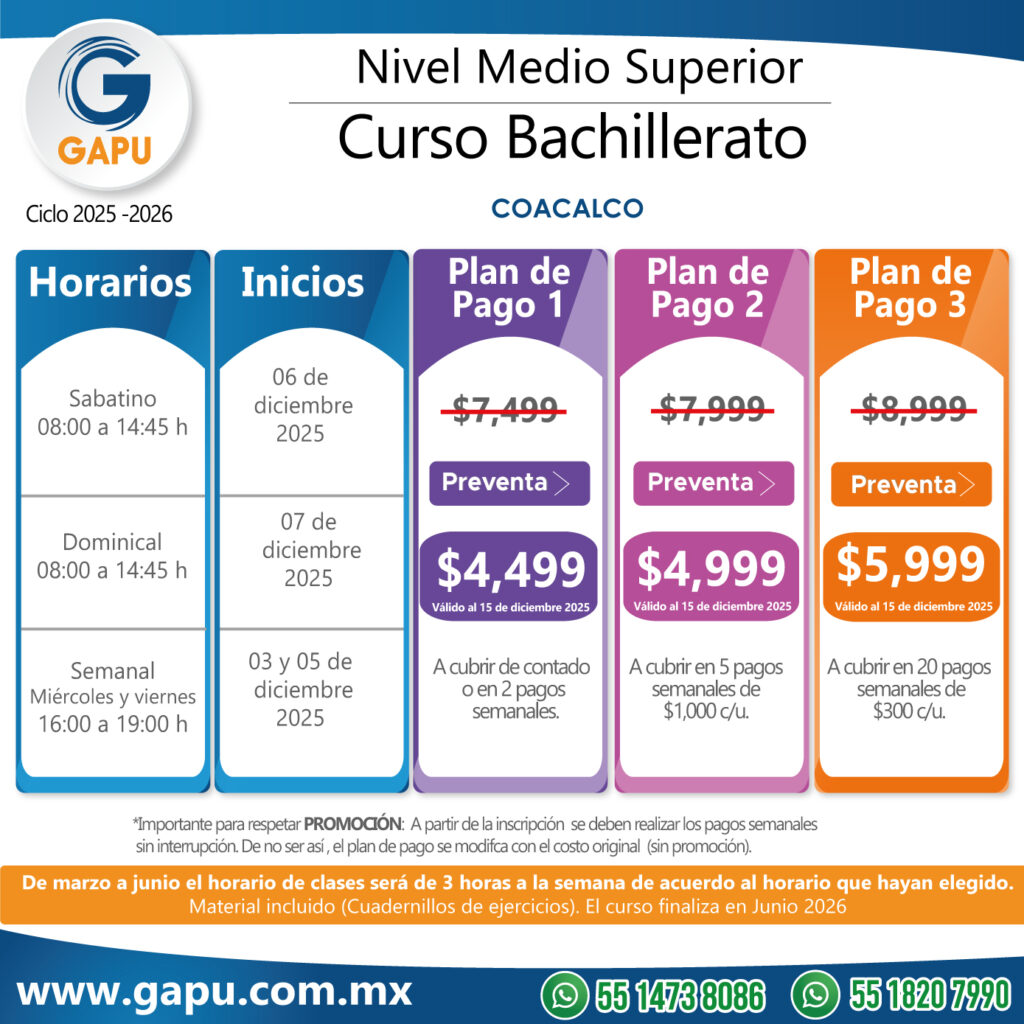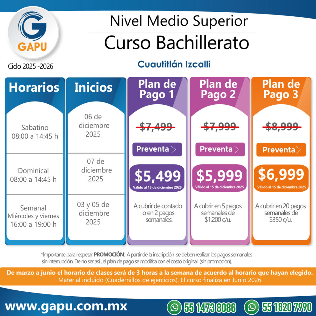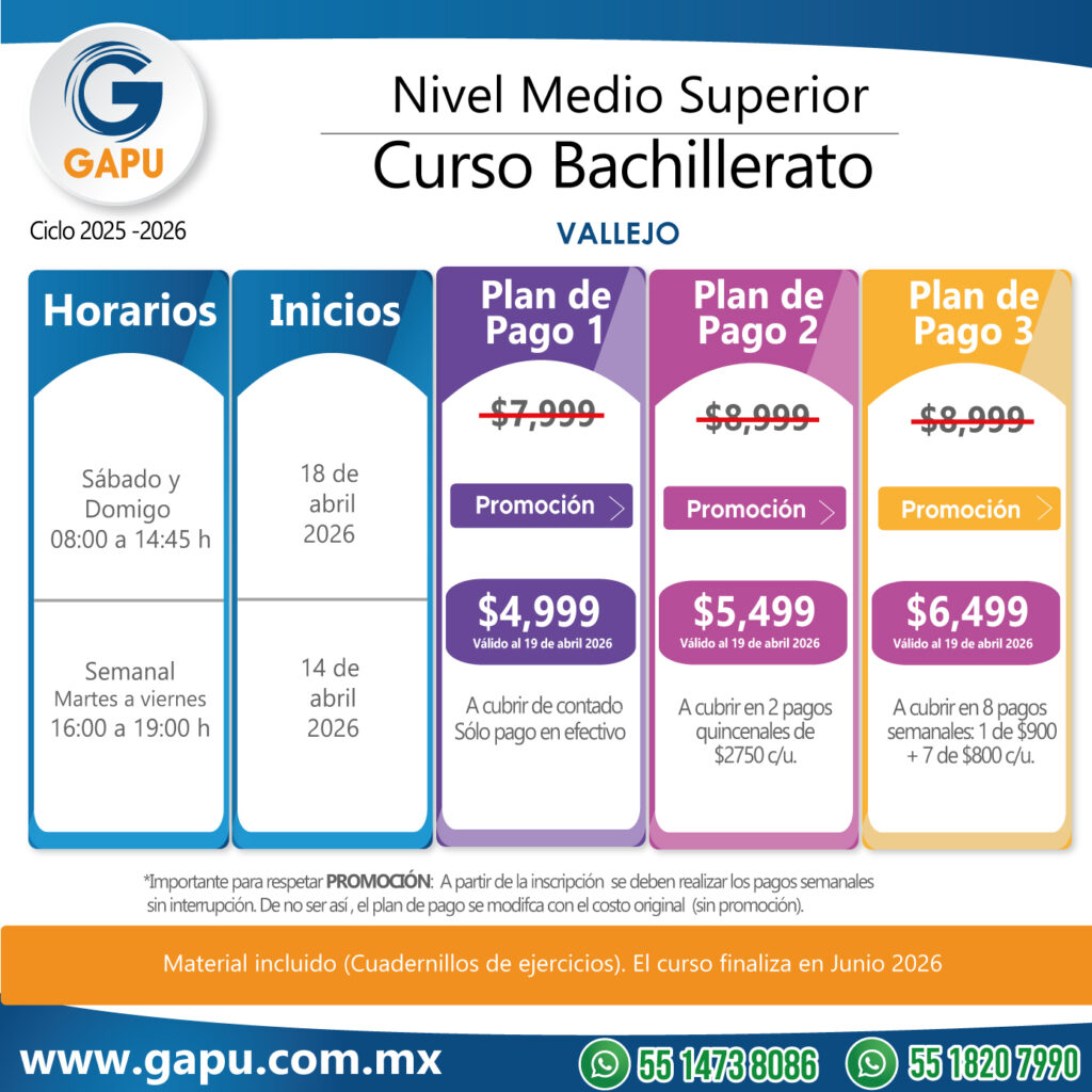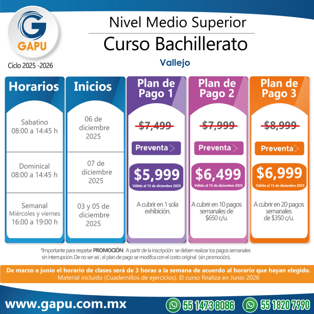 Ingresa a tu primera opción de preparatoria con el curso que tenemos para ti. Nuestras clases están diseñadas para que logres obtener más de 100 aciertos. De esta forma lograrás ingresar a escuelas de alta demanda: CCH, ENP (UNAM), Voca (Poli), Normales, Preparatorias Oficiales, etc.